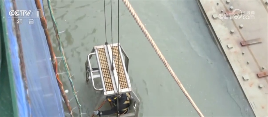 6月9日凌晨5時(shí)左右,準(zhǔn)備潛水檢查作業(yè)的4名潛水員分別從船頭船尾下水,檢查即將安裝的最后一個(gè)管節(jié)兩端是否存在異物,并在水下安裝最終接頭測(cè)控設(shè)備。