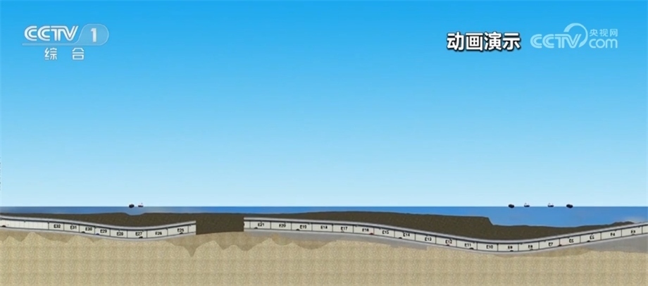 總臺(tái)央視記者 李偉代:我身后就是深中通道西人工島,它是深中通道橋隧轉(zhuǎn)換的關(guān)鍵構(gòu)造;從這里開始,深中通道將從橋梁部分轉(zhuǎn)入全長(zhǎng)6845米海底隧道部分,未來汽車將從這里駛?cè)牒5姿淼?,最深將在海?0米的沉管中行駛。