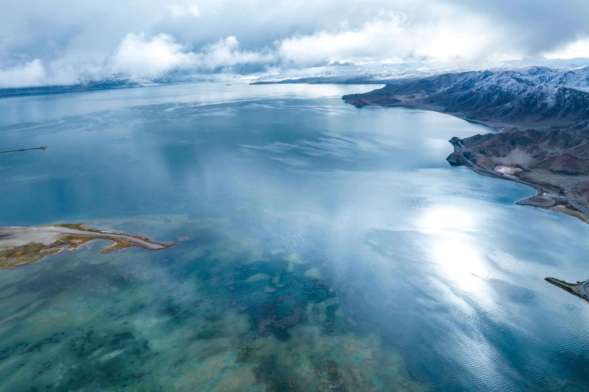 2023年6月6日,西藏阿里,日土縣班公湖,湛藍(lán)的湖水、潔白的雪山、奇特的沿湖景觀,構(gòu)成一幅夏日醉美畫(huà)卷。視覺(jué)中國(guó)