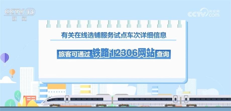 央視網(wǎng)消息:記者從國(guó)鐵集團(tuán)獲悉,今天(6月10日)起,鐵路部門(mén)將在12306網(wǎng)站和12306手機(jī)客戶端試行在線選鋪服務(wù)。