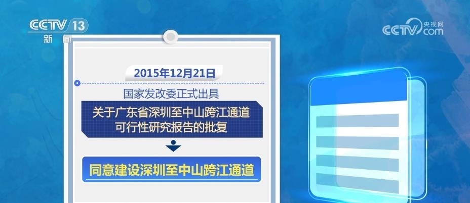 2015年12月21日,國家發(fā)展改革委正式出具關于廣東省深圳至中山跨江通道可行性研究報告的批復,同意建設深圳至中山跨江通道。