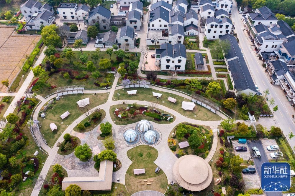 4月11日拍攝的浙江湖州市吳興區(qū)織里鎮(zhèn)伍浦村漁耕文化園的陶灣里鄉(xiāng)村咖啡店以及鄉(xiāng)村露營(yíng)地(無(wú)人機(jī)照片)。近年來(lái),湖州市吳興區(qū)織里鎮(zhèn)依托當(dāng)?shù)孛利愢l(xiāng)村建設(shè)以及自然風(fēng)光,招引鄉(xiāng)賢返鄉(xiāng)創(chuàng)業(yè),用閑置民宅、閑置土地建設(shè)特色咖啡店、花海景觀、特色民宿和農(nóng)家樂(lè)等,做足鄉(xiāng)村旅游經(jīng)濟(jì)功課。新華社記者 徐昱 攝