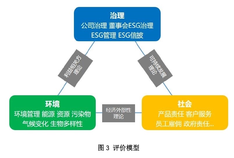 基于此,我們在構(gòu)建ESG評價模型時,打破現(xiàn)有主流ESG評級體系重點關(guān)注ESG風(fēng)險管理(即企業(yè)的負外部性)的常規(guī)思路,將企業(yè)經(jīng)營發(fā)展對社會環(huán)境的正向價值與貢獻(即企業(yè)的正外部性)納入考量,創(chuàng)新構(gòu)建了包含“環(huán)境、社會、治理”三個維度且兼顧風(fēng)險管理和社會價值貢獻的ESG評價模型(見圖3)。