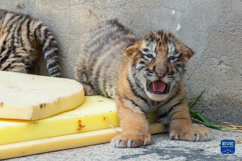 目前,黑龍江東北虎林園今年新出生的東北虎幼崽大部分已滿月。這些活潑好動的小東北虎天氣好時(shí)就會被送到室外活動,在飼養(yǎng)員的悉心照料下茁壯成長。新華社記者 謝劍飛 攝