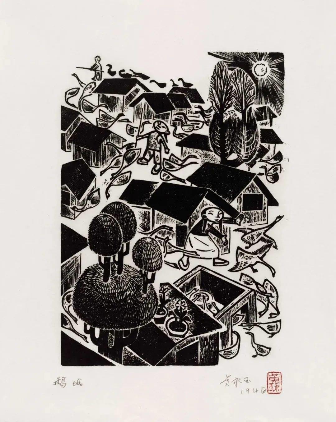 大伙的食堂 1960年 32×27cm 木版套色 中央美術學院美術館藏