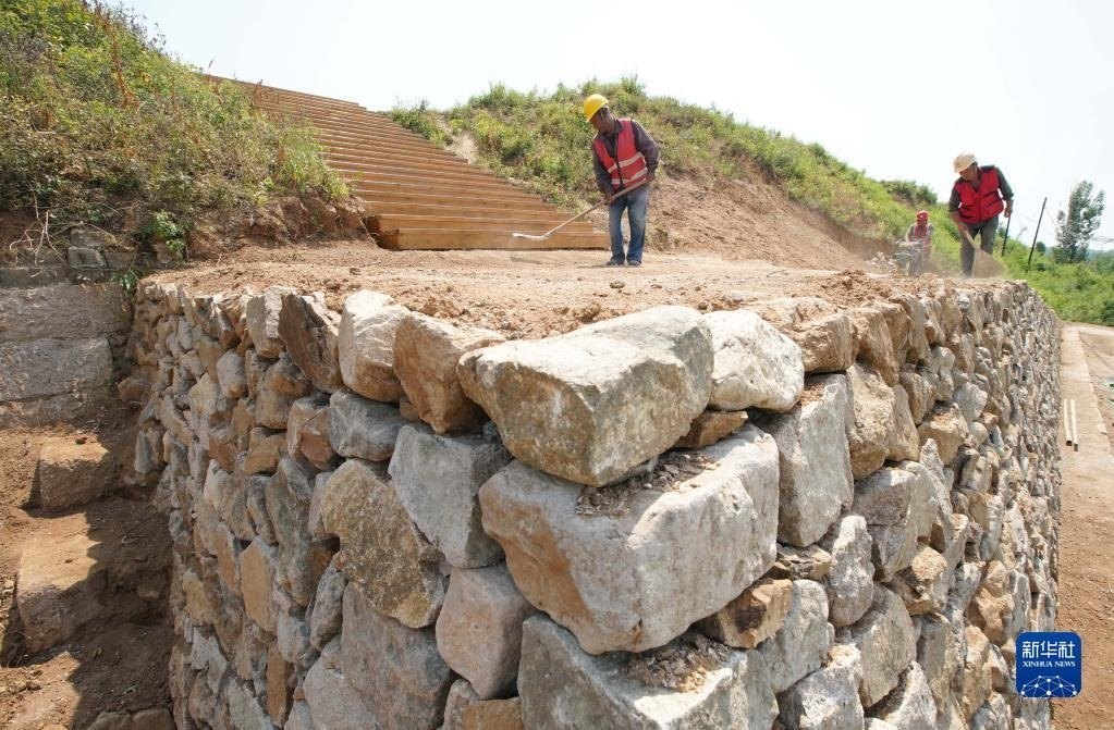 近日,河北省秦皇島市山海關(guān)區(qū)山海關(guān)長(zhǎng)城保護(hù)展示工程——腰鋪9號(hào)敵臺(tái)和51號(hào)墻臺(tái)馬道保護(hù)修繕工程施工穩(wěn)步推進(jìn)。據(jù)介紹,腰鋪9號(hào)敵臺(tái)和51號(hào)墻臺(tái)馬道是山海關(guān)長(zhǎng)城軍事防御體系中重要的附屬設(shè)施。修繕工程預(yù)計(jì)7月底完工。新華社記者 楊世堯 攝