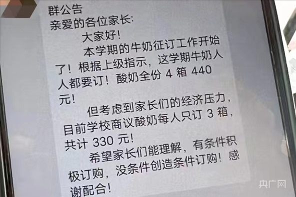·駐馬店正陽(yáng)縣教育局發(fā)布關(guān)于正陽(yáng)縣某學(xué)校涉嫌違規(guī)征訂學(xué)生飲用奶的調(diào)查情況通報(bào):涉事班級(jí)解讀文件出現(xiàn)偏差。處理意見(jiàn):立即暫停征訂工作,進(jìn)行整頓規(guī)范,對(duì)相關(guān)責(zé)任人員進(jìn)行調(diào)查。