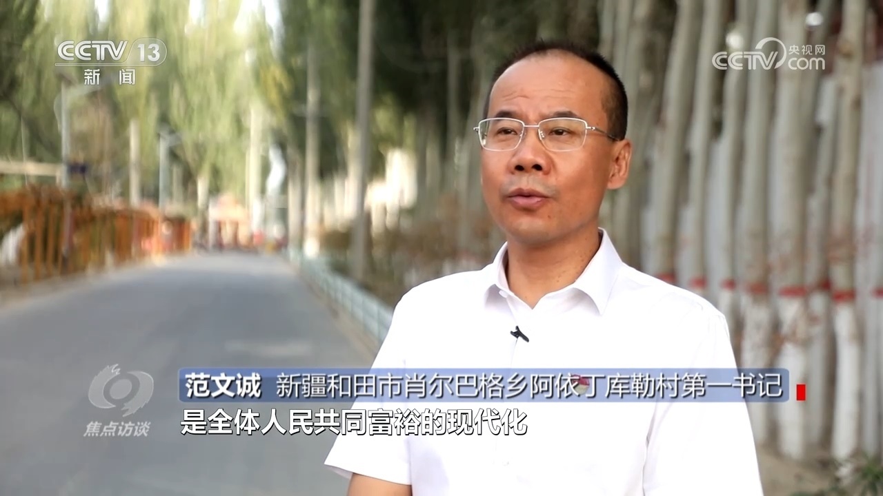 新疆和田市肖爾巴格鄉(xiāng)阿依丁庫勒村第一書記范文誠:“中國式現(xiàn)代化是人口規(guī)模巨大的現(xiàn)代化,是全體人民共同富裕的現(xiàn)代化,將理論聯(lián)系當(dāng)前的農(nóng)村實際相切合,要始終堅持從人民出發(fā)、從實際出發(fā),分類確定建設(shè)發(fā)展模式、特色產(chǎn)業(yè)?!?/p>