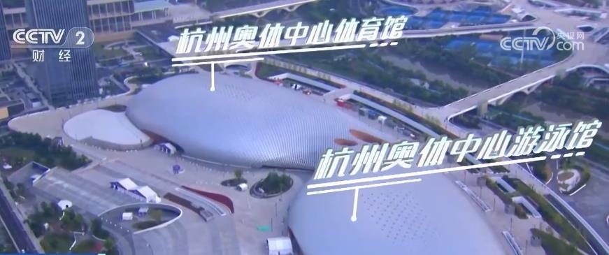 現(xiàn)在我們看到的場(chǎng)館猶如蝴蝶張開翅膀,靠近錢塘江一側(cè)的是杭州奧體中心游泳館,它是僅次于“水立方”的全國(guó)第二大游泳跳水館,另一側(cè)是杭州奧體中心體育館。