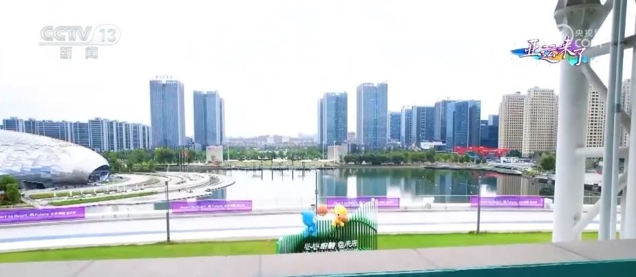 一邊看比賽,一邊賞風景,將是觀眾在這座亞運場館的獨特體驗。往北遠處高樓林立,近處就是鳳棲湖,湖邊矗立的橢圓形建筑是德清國際會議中心,也是(首屆)聯(lián)合國地理信息大會的會址。德清地理信息小鎮(zhèn)是中國首個地理信息產(chǎn)業(yè)化小鎮(zhèn),在這里能夠感受小鎮(zhèn)的數(shù)字活力。往南則是綿延起伏的山巒,可以欣賞到小鎮(zhèn)的自然風光。因此,這里不僅將帶來三人制籃球的精彩賽事,也將成為當?shù)叵蚴澜缯故境鞘酗L貌的一個窗口。