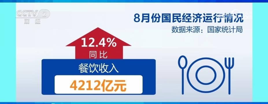 市場(chǎng)銷售加快恢復(fù),8月份,社會(huì)消費(fèi)品零售總額37933億元,同比增長(zhǎng)4.6%,增速比上月加快;餐飲收入4212億元,同比增長(zhǎng)12.4%,保持較快增速。