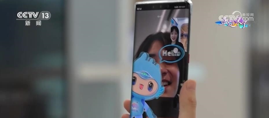 目前,“5G新通話”可實現(xiàn)中英雙語互譯。此外,大家看到屏幕里向我們揮手的亞運吉祥物了嗎?這就是趣味通話的其中一個應(yīng)用場景。配合亞運主題,研發(fā)人員設(shè)計了多種特定手勢識別,當我們對著鏡頭打招呼或者比愛心的時候,就可以觸發(fā)趣味通話功能,亞運吉祥物也能和我們同屏。