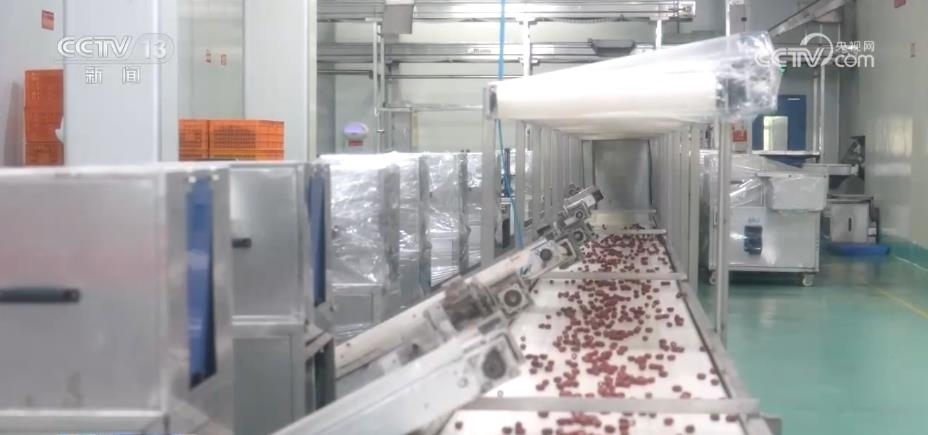 央視網(wǎng)消息:眼下,河南新鄭紅棗迎來盛果期。棗園里,顆顆紅棗像串成寶石項(xiàng)鏈一般掛滿枝頭,采收工人正忙著打棗、收棗,一派繁忙景象。