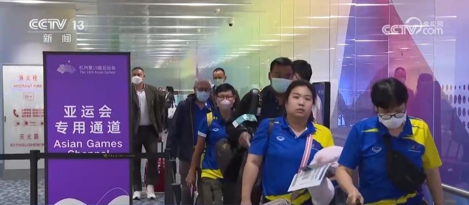 整個(gè)亞運(yùn)會(huì)期間,預(yù)計(jì)有來(lái)自40多個(gè)國(guó)家和地區(qū)的亞運(yùn)代表團(tuán)通過(guò)杭州機(jī)場(chǎng)入境。除了代表團(tuán)之外,還將有各國(guó)的亞運(yùn)媒體轉(zhuǎn)播商,總?cè)藬?shù)預(yù)計(jì)將超過(guò)2萬(wàn)人。9月16日,距離亞運(yùn)會(huì)開幕還有整整7天的時(shí)間,將迎來(lái)一個(gè)代表團(tuán)到達(dá)的小高峰。9月16日上午8時(shí),一趟來(lái)自泰國(guó)曼谷的飛機(jī)經(jīng)過(guò)了4個(gè)多小時(shí)的飛行,搭載著近70名亞運(yùn)代表團(tuán)成員飛抵杭州。