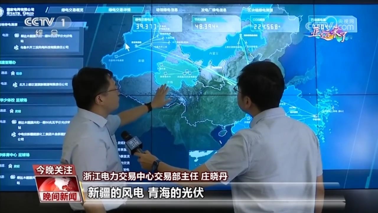 浙江電力交易中心交易部主任 莊曉丹:新疆的風電、青海的光伏以及內蒙古的風電,分別通過三條特高壓直流線路,向浙江提供綠色電力供應。