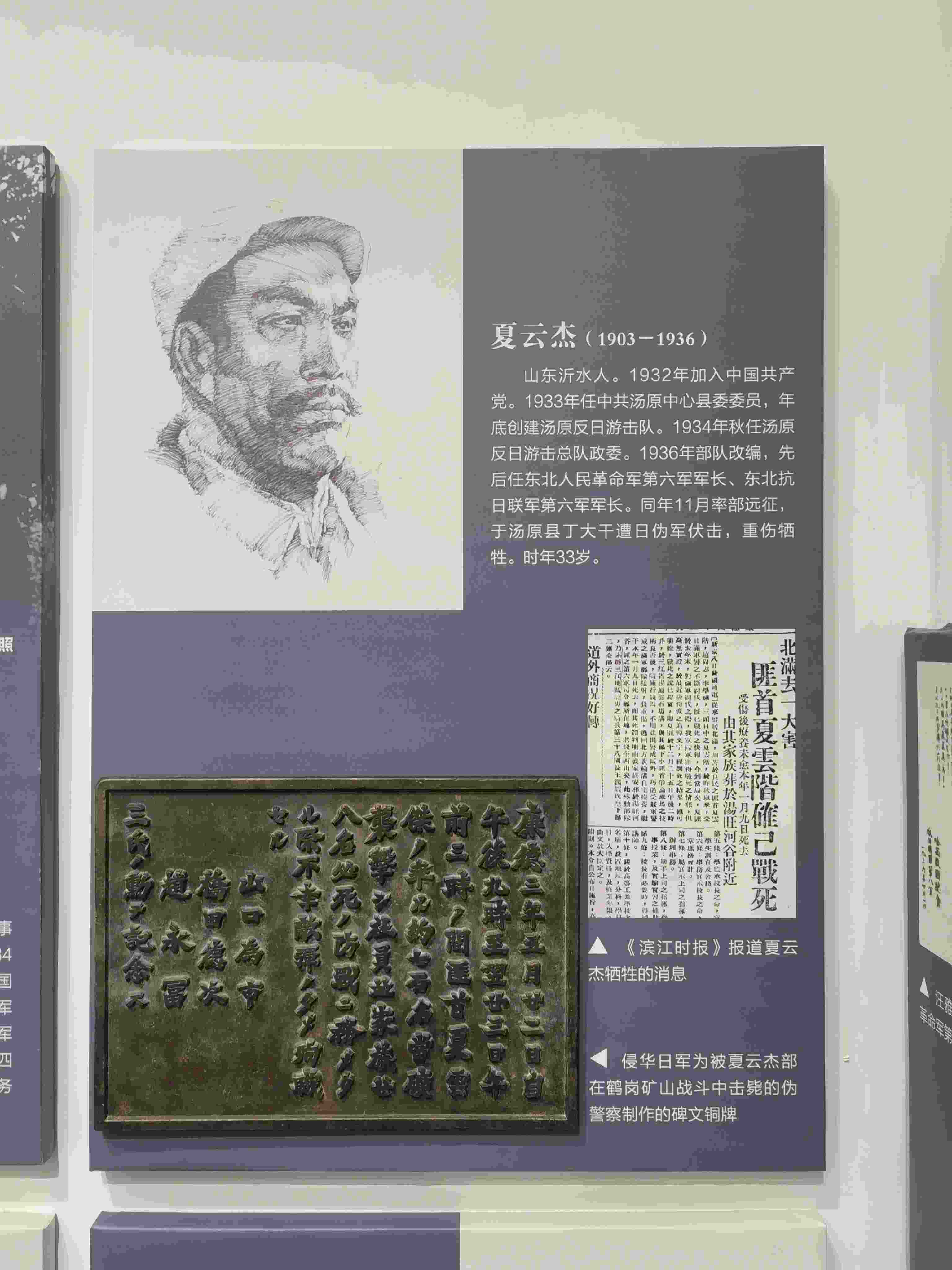 這塊碑文銅牌來自黑龍江鶴崗礦區(qū)的一座“忠靈塔”上,是日本侵略者為侵華戰(zhàn)爭中戰(zhàn)死的日偽軍而建。碑文銅牌,長51厘米、高36.5厘米、寬2厘米、重12千克。上面的文字記載了日偽軍和抗聯戰(zhàn)士戰(zhàn)斗過程。從表述內容來看,這塊碑文具有極大欺騙性。它制造了普通百姓遭土匪襲擊的“無辜”假象,妄圖以此加深東北民眾與革命隊伍之間的對立情緒。而事實真相是,1936年5月22日夜,東北人民革命軍第六軍軍長夏云杰指揮六軍第一、二、三團,分兵兩路襲擊了鶴崗礦山。在我黨地下工作人員的密切配合下,順利解除了礦山警察二隊的全部武裝,并擊斃日軍指導官山口為市、橋田德次和偽礦山警察大隊隊長趙永富。這次戰(zhàn)斗繳獲敵人大批槍支彈藥,我軍無一人傷亡。23日凌晨,夏云杰率領部隊攜帶戰(zhàn)利品凱旋。