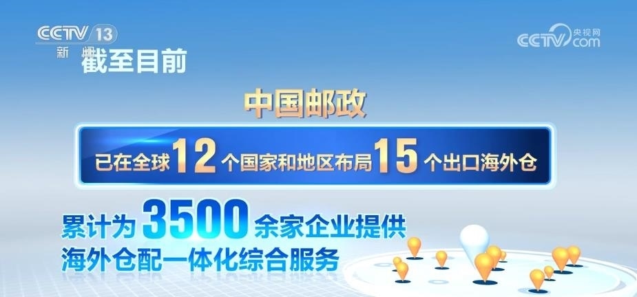 截至目前,中國(guó)郵政已在全球12個(gè)國(guó)家和地區(qū)布局了15個(gè)出口海外倉,累計(jì)為3500余家企業(yè)提供海外倉配一體化綜合服務(wù)。