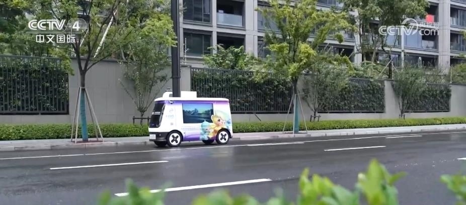 總臺記者 黃珊:亞運村里的AR智能巴士在全自動巡航狀態(tài)下,能為乘客提供接駁、講解的服務(wù)。正前方的特殊窗戶結(jié)合車載AR功能,透過它能夠看到車外的實時影像,結(jié)合虛擬場景,虛實結(jié)合,非常奇妙。