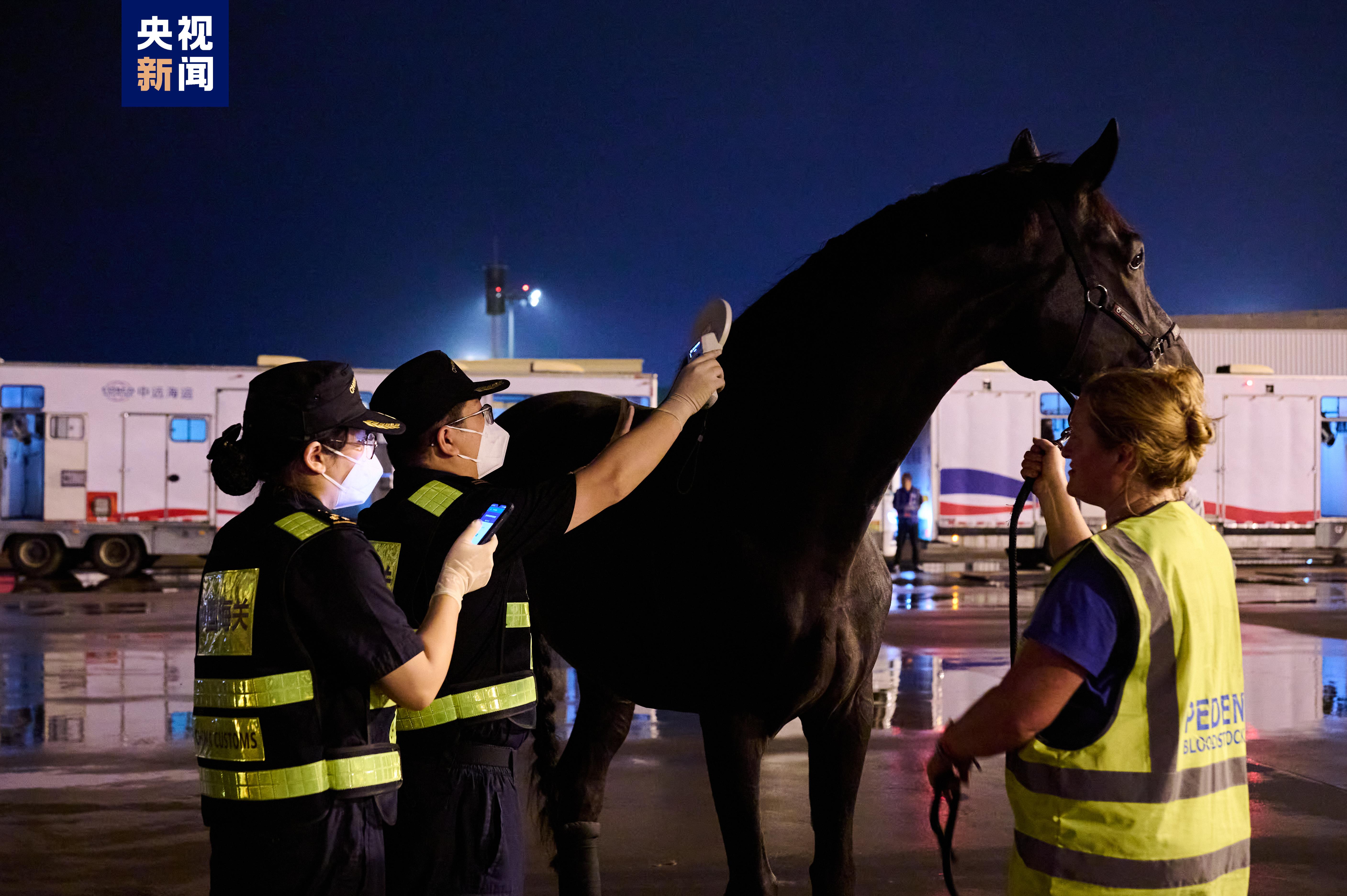 杭州亞運(yùn)會(huì)賽事總指揮部馬術(shù)項(xiàng)目管理指揮中心相關(guān)負(fù)責(zé)人表示,“這些參賽馬經(jīng)過了十幾個(gè)小時(shí)的長(zhǎng)途飛行,狀態(tài)比較疲憊,我們要在精準(zhǔn)查驗(yàn)、確保安全的同時(shí),盡可能縮短通關(guān)轉(zhuǎn)運(yùn)時(shí)間,保障馬匹福利。”為此,杭州蕭山國際機(jī)場(chǎng)停機(jī)坪提前用圍擋設(shè)置了專門的馬匹裝卸轉(zhuǎn)運(yùn)場(chǎng)地,完成場(chǎng)地消殺,專用運(yùn)輸車輛和設(shè)備提前進(jìn)入。海關(guān)就近設(shè)置隨機(jī)人員通關(guān)專用通道,縮短人、馬分離時(shí)間,保障隨機(jī)人員與參賽馬同步通關(guān),并創(chuàng)新開發(fā)參賽馬芯片識(shí)別程序,運(yùn)用“賽馬檢疫在線”智慧監(jiān)管系統(tǒng)大幅提升參賽馬身份驗(yàn)核效率。同時(shí),通過優(yōu)化流程、協(xié)同運(yùn)行,確保馬匹裝備、飼料、獸藥、馬醫(yī)療器械等隨機(jī)物資快速通關(guān)。參賽馬采用“快進(jìn)快出”的方式,在同等動(dòng)物衛(wèi)生條件下參賽,比賽結(jié)束后立即出境,實(shí)現(xiàn)賽馬“順利入境、健康參賽、安全返回”。