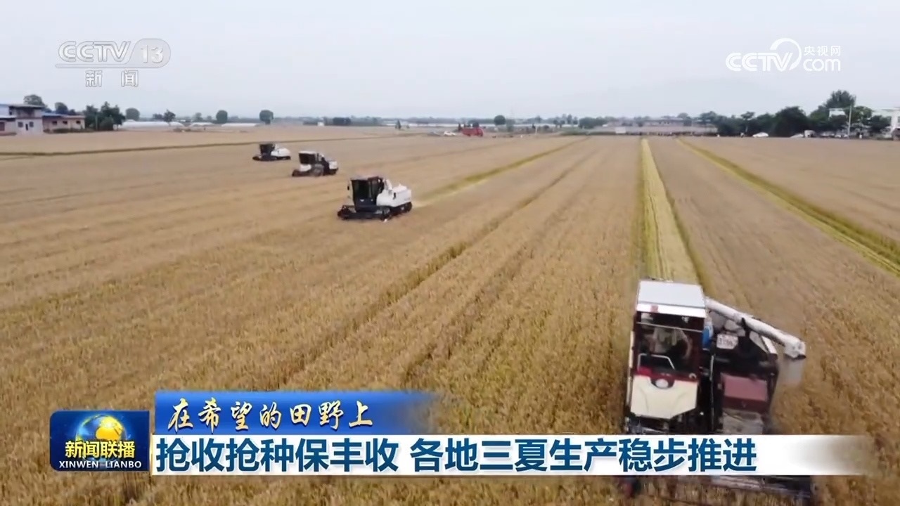 央視網(wǎng)消息:這里是湖北省咸寧市大幕鄉(xiāng)東源村的千畝中稻示范田,層層疊疊的金色稻田里,收割機(jī)正在穿梭作業(yè)。農(nóng)戶們則配合著裝袋,將收好的稻谷轉(zhuǎn)運(yùn)到附近的曬谷場(chǎng)就近晾曬。