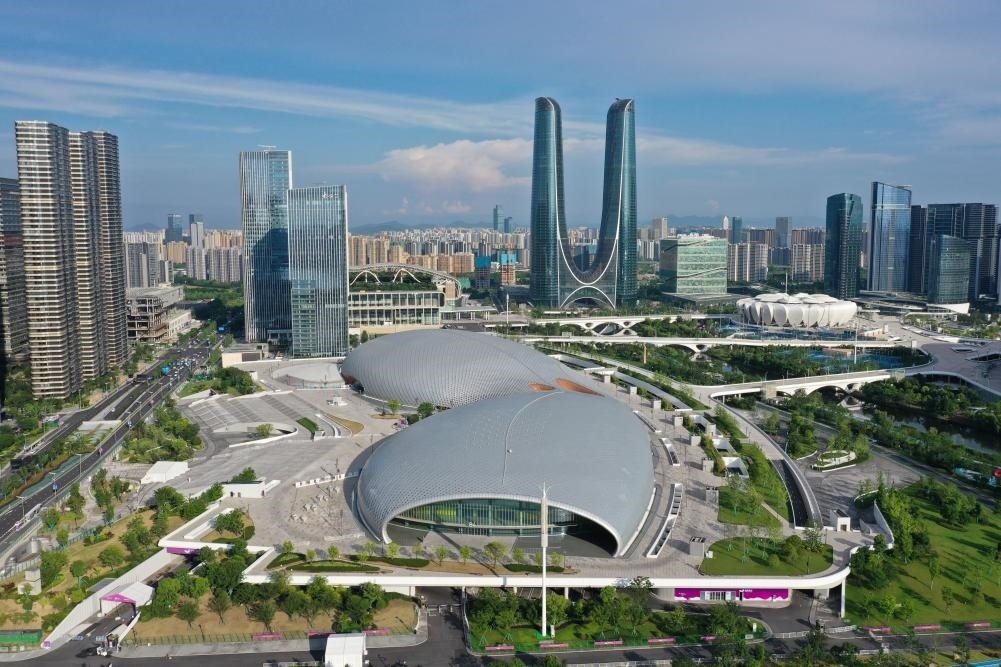 這是2023年6月28日拍攝的杭州奧體中心游泳館、體育館(無人機照片)。新華社記者 黃宗治 攝