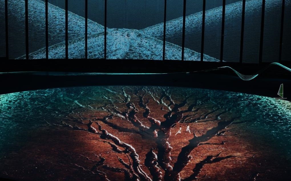 裸眼3D、AR數(shù)字穹頂、3D雙威亞、流體計算和185米寬、15米高的網幕等技術,實現(xiàn)了立體美學和東方美學的融合,也實現(xiàn)了技術和藝術的雙向奔赴。