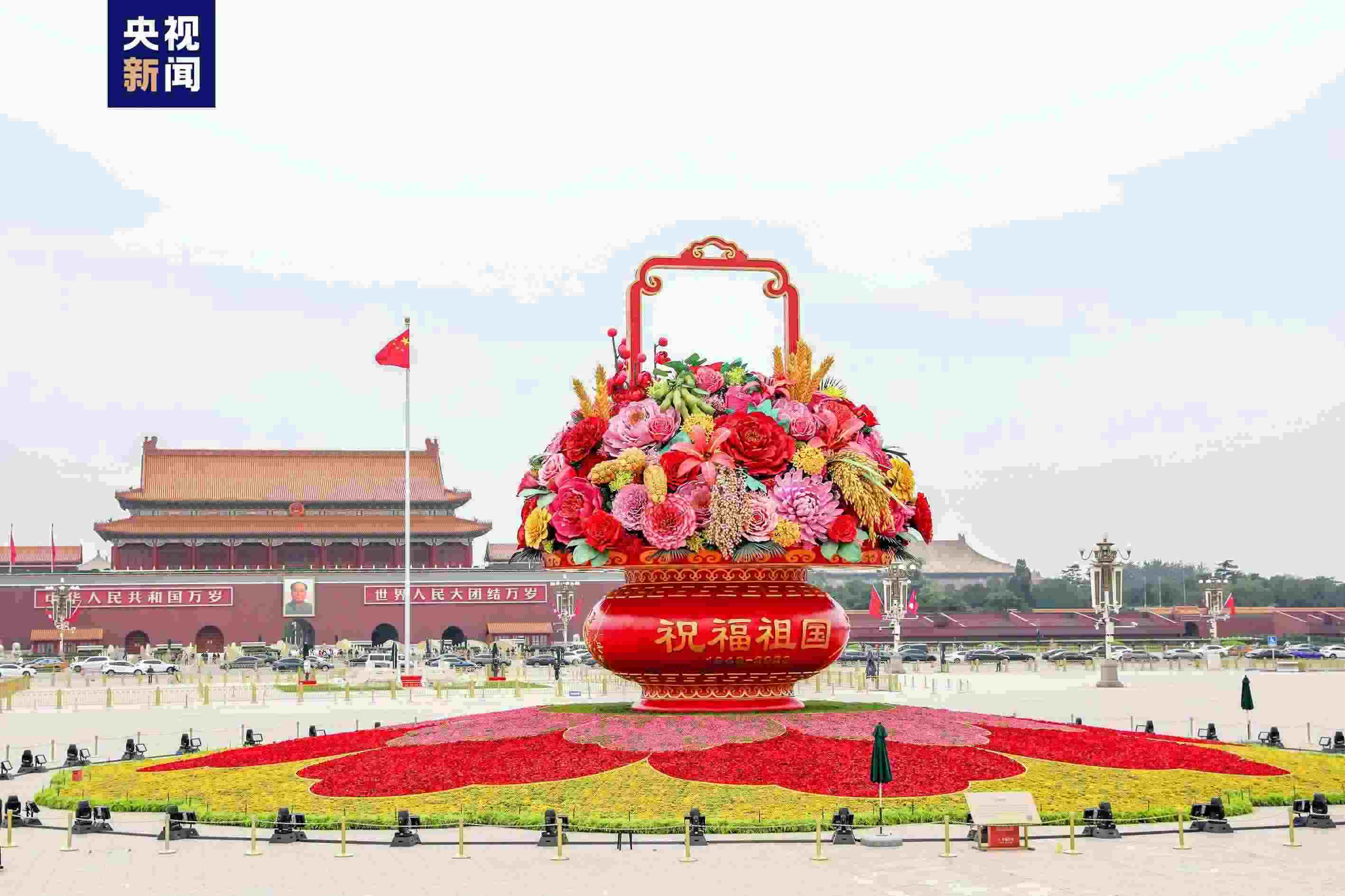 記者從北京市園林綠化局了解到,9月25日,“祝福祖國”巨型花籃亮相天安門廣場(chǎng)。長(zhǎng)安街等重要區(qū)域綠化布置也同期完工。