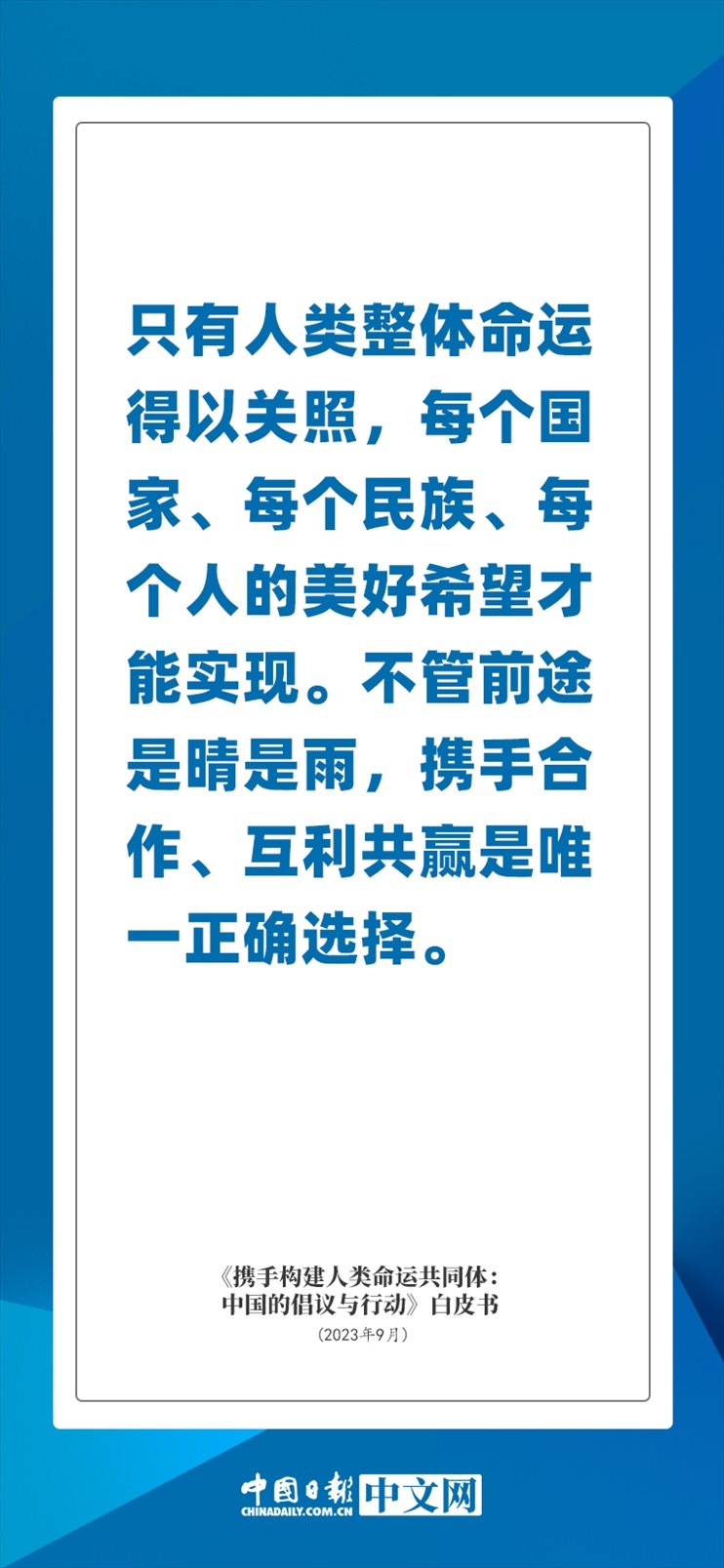 國務(wù)院新聞辦公室于2023年9月26日發(fā)布《攜手構(gòu)建人類命運(yùn)共同體:中國的倡議與行動(dòng)》白皮書,發(fā)人深思催人奮進(jìn)。