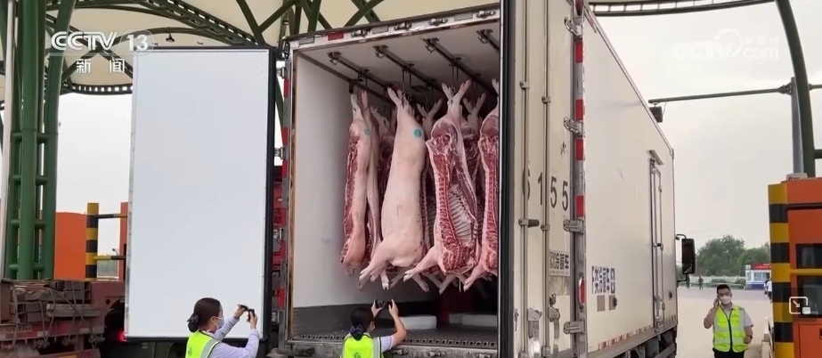 為了保障肉品質(zhì)量,在這家保供基地生豬屠宰后,會馬上進(jìn)入預(yù)冷車間,預(yù)冷2小時之后再轉(zhuǎn)運(yùn)到冷鏈車上,運(yùn)輸全程制冷。另外,當(dāng)?shù)卣瓦\(yùn)管部門也同步強(qiáng)化服務(wù),在檢疫、運(yùn)輸、轉(zhuǎn)運(yùn)等多個環(huán)節(jié)提供便利。