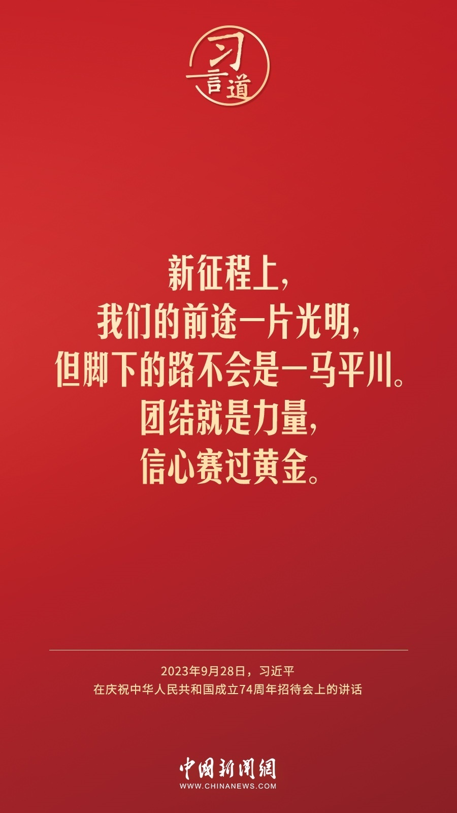 慶祝中華人民共和國成立74周年招待會(huì)28日晚在人民大會(huì)堂舉行。中共中央總書記、國家主席、中央軍委主席習(xí)近平出席招待會(huì)并發(fā)表重要講話。他強(qiáng)調(diào)——