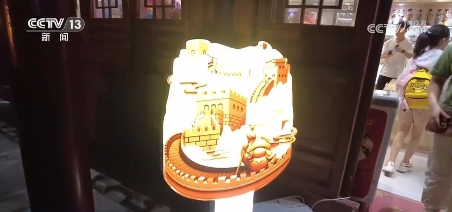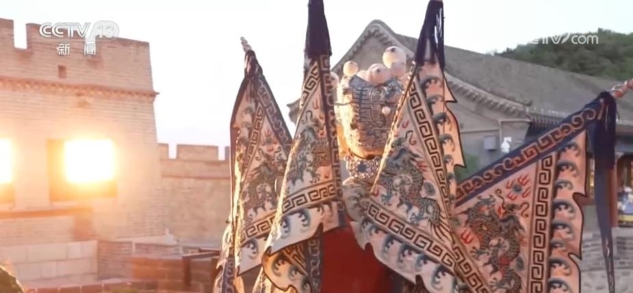 除了觀賞之外,八達(dá)嶺長城還為游客提供了豐富的消費(fèi)體驗(yàn)。在文化街區(qū)里,正在上演《夢回長城,八方來鶴》為主題的演出,游客們可以和京劇、地方歌舞的表演者互動。絢爛的燈光表演則為古老的長城增添了不少現(xiàn)代感與時(shí)尚感。穿上漢服,買一面國旗,品嘗一下長城的文創(chuàng)雪糕,市集小店里洋溢著濃濃的煙火氣。