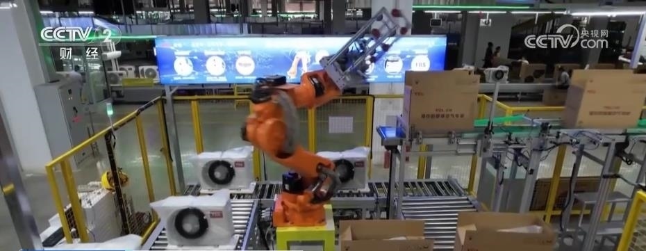 在武漢,一個空調(diào)智能制造基地里,全球首條無塵新風(fēng)空調(diào)專用生產(chǎn)線上,智能制造元素隨處可見,上百臺機(jī)器人正24小時連續(xù)作業(yè)。在工廠里,記者還發(fā)現(xiàn)這里到處都是大大小小的顯示屏,總數(shù)量達(dá)到了800多塊,大約每3個工人就擁有1塊屏幕。