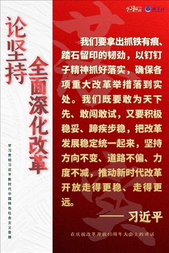 實現(xiàn)新時代新征程的目標(biāo)任務(wù),要把全面深化改革作為推進中國式現(xiàn)代化的根本動力,作為穩(wěn)大局、應(yīng)變局、開新局的重要抓手,把準方向、守正創(chuàng)新、真抓實干,在新征程上譜寫改革開放新篇章。