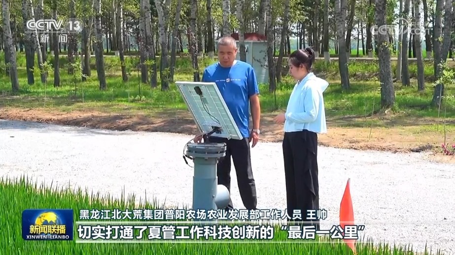 在北大荒普陽(yáng)農(nóng)場(chǎng)第四管理區(qū)的水稻種植地塊,一套集災(zāi)情氣象、土壤墑情、病蟲(chóng)害和苗情長(zhǎng)勢(shì)監(jiān)測(cè)于一體的農(nóng)情監(jiān)測(cè)設(shè)備,正在24小時(shí)不間斷地對(duì)水稻生長(zhǎng)進(jìn)行全面監(jiān)控。