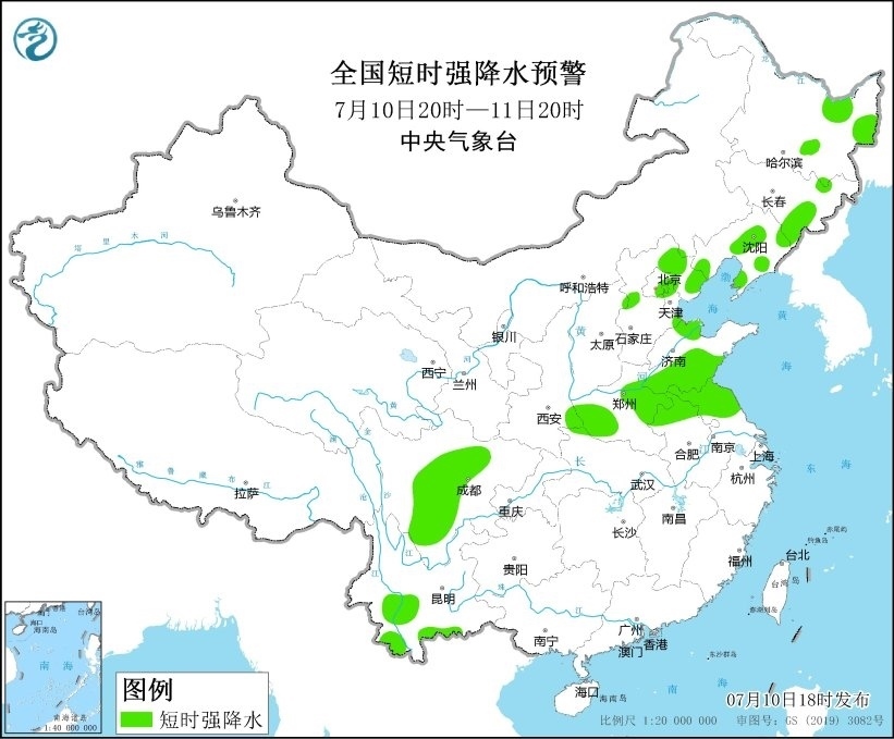 央視網(wǎng)消息:中央氣象臺(tái)7月10日18時(shí)繼續(xù)發(fā)布強(qiáng)對流天氣藍(lán)色預(yù)警,預(yù)計(jì)7月10日20時(shí)至11日20時(shí),黑龍江東北部、河北北部、北京東南部、天津北部、山東南部、河南東部、安徽北部、江蘇北部、川西高原南部和四川盆地西南部等地的部分地區(qū)將有8-10級(jí)雷暴大風(fēng)或冰雹天氣;黑龍江東部、吉林東部、遼寧、陜西東南部、河北中北部、北京東部、天津北部、山東西北部和南部、河南東部和西南部、安徽北部、江蘇中北部、川西高原、四川盆地西部、云南中南部等地的部分地區(qū)將有短時(shí)強(qiáng)降水天氣,小時(shí)雨量30-50毫米,局地可達(dá)60毫米以上。