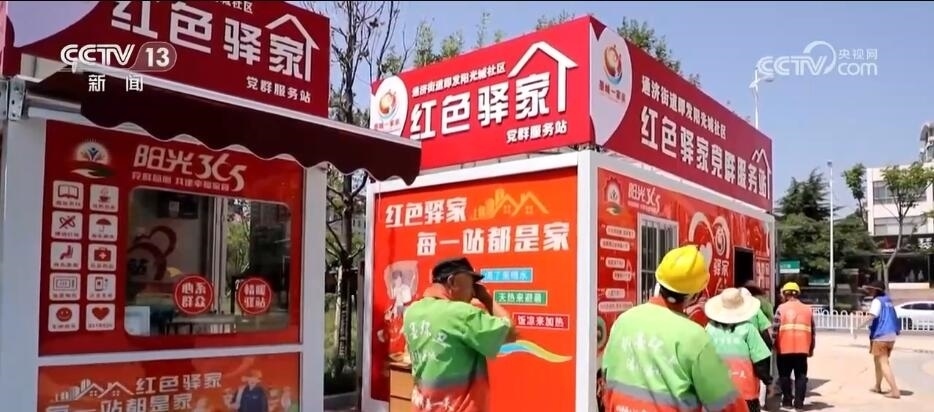 在青島市即墨區(qū),34處新啟用的“紅色驛家”黨群服務(wù)站,成了環(huán)衛(wèi)工人們歇腳的新去處。這些“紅色驛家”配備空調(diào),可以提供應(yīng)急充電、免費(fèi)飲水、急救藥箱、愛心雨傘等13項服務(wù)。