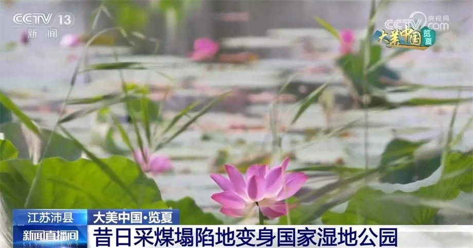 眼下,江蘇沛縣安國湖國家濕地公園的荷花次第綻放,從空中俯瞰,紅色的荷花點綴在綠色的荷葉之間,形成了一派美麗的夏日景色。安國湖國家濕地公園規(guī)劃建設(shè)面積517.06公頃,分為生態(tài)保育區(qū)、恢復(fù)重建區(qū)、合理利用區(qū)三大功能區(qū),其中濕地率達75.84%。據(jù)了解,十幾年前,這里還是一片采煤塌陷地。從2012年起,黃河故道沿線地區(qū)綜合開發(fā)啟動,當?shù)亻_始建設(shè)濕地公園,通過地形重塑、水系貫通、生態(tài)駁岸修復(fù)、植被恢復(fù)等生態(tài)治理,目前這里已經(jīng)成為全國采煤塌陷地生態(tài)修復(fù)示范區(qū)。