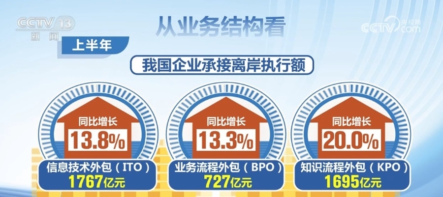 央視網(wǎng)消息:商務(wù)部今天(7月20日)公布2023年上半年我國(guó)服務(wù)外包產(chǎn)業(yè)發(fā)展數(shù)據(jù)。上半年,我國(guó)服務(wù)外包產(chǎn)業(yè)穩(wěn)步增長(zhǎng)。