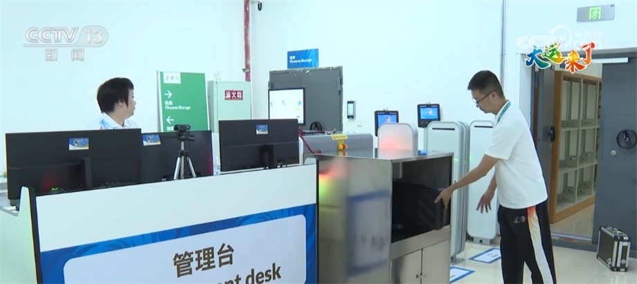 總臺記者 王勝東:我現(xiàn)在就來到了射擊場館非常重要的一個區(qū)域——槍彈庫,這里通過人臉識別、芯片識別和這臺X光機(jī),共同組成了一套安檢系統(tǒng),可以確保教練員和運動員在人、槍、彈分離的安全前提下快速、有效地通關(guān)、出入庫。