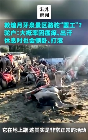 ·敦煌景區(qū)駱駝“罷工”?駝戶:或因瘙癢出汗,休息會(huì)側(cè)臥打滾。