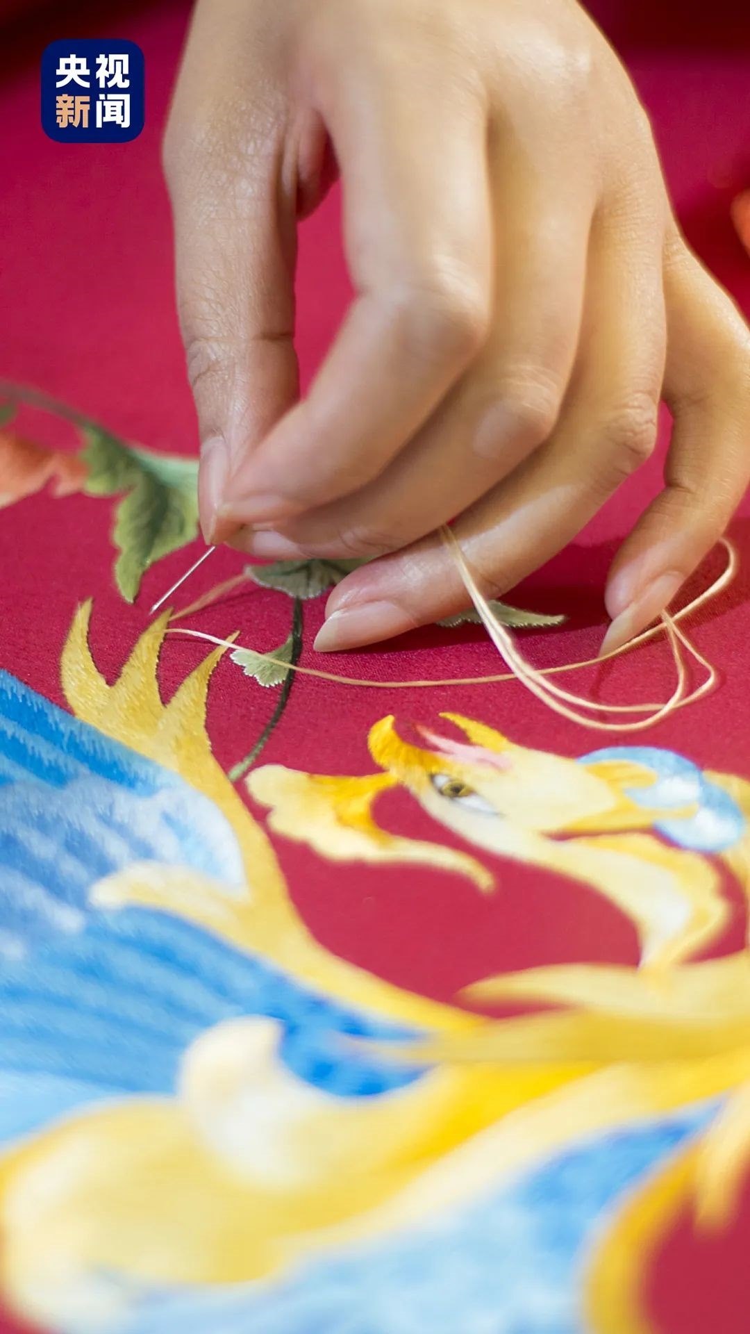 △蜀繡。蜀繡以其明麗清秀的色彩和精湛細(xì)膩的針法形成了獨(dú)特韻味。