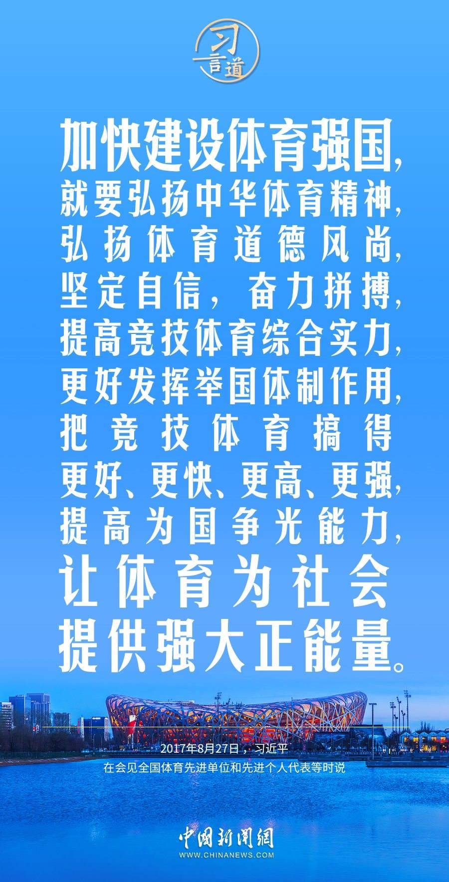 習(xí)近平總書記高度重視體育強國建設(shè),多次作出重要論述,強調(diào)讓體育為社會提供強大正能量。