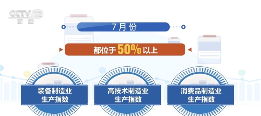 ?????? 國家統(tǒng)計(jì)局服務(wù)業(yè)調(diào)查中心二級(jí)巡視員 史朝暉:從具體的行業(yè)表現(xiàn)情況來看,7月份的石油煤炭加工、化學(xué)纖維及橡膠塑料制品,還有專用設(shè)備,鐵路、船舶、航空航天設(shè)備以及計(jì)算機(jī)通信電子設(shè)備,這些行業(yè)的生產(chǎn)指數(shù)和新訂單指數(shù)都是高于臨界點(diǎn)的,表明這些行業(yè)的產(chǎn)需兩端同步擴(kuò)張。