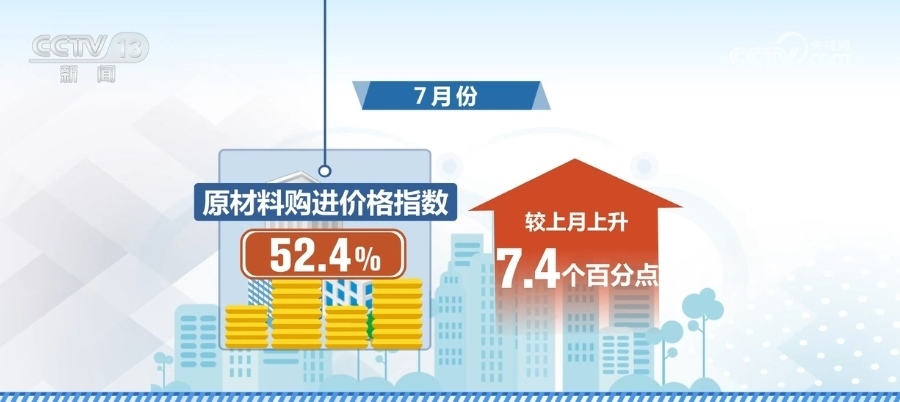 7月份,原材料購進(jìn)價(jià)格指數(shù)為52.4%,較上月上升7.4個(gè)百分點(diǎn),結(jié)束了連續(xù)三個(gè)月運(yùn)行在50%以下的勢(shì)頭。制造業(yè)生產(chǎn)用原材料價(jià)格總體水平有所上升。