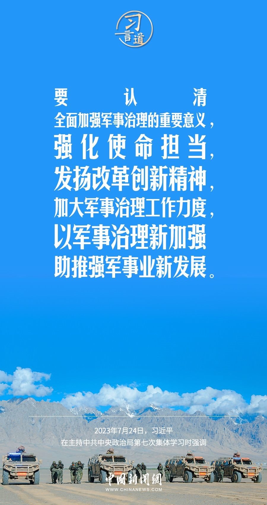 八一建軍節(jié)來臨之際,中共中央政治局7月24日下午就全面加強軍事治理進行第七次集體學(xué)習(xí)。中共中央總書記習(xí)近平主持學(xué)習(xí),他強調(diào)——
