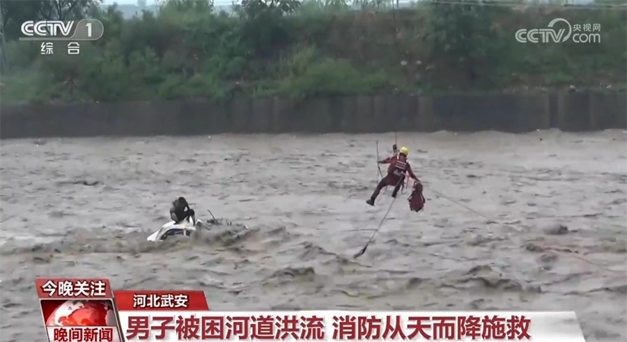 7月30日下午,河北武安一男子駕車涉水過橋時(shí),被湍急的洪水沖入洺河河道近百米,救援人員接警后立即趕往現(xiàn)場。從現(xiàn)場情況看,因水流過于湍急,被困車輛隨急流翻滾,洪流一度沒過車頂?,F(xiàn)場指揮員隨即協(xié)調(diào)起吊車等工程車輛協(xié)助進(jìn)行救援,最終經(jīng)過1小時(shí)20分的驚險(xiǎn)救援,被困男子成功獲救。