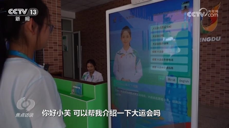 本屆大運(yùn)會的虛擬志愿者小芙,通過先進(jìn)的語音合成、AI口唇表情驅(qū)動、圖像處理等技術(shù),能夠使用普通話、四川話和英文,和攝像頭識別出的對象進(jìn)行“面對面”的直接交流。這套系統(tǒng)的研發(fā)者之一雷曉輝是一名“90后”工程師。