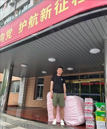 鄧?yán)资前不栈茨先?,小時(shí)候家鄉(xiāng)發(fā)洪水,被全國人民幫助過。當(dāng)看到涿州被洪水侵襲,他驅(qū)車16小時(shí)1400公里送上自費(fèi)籌集的物資。他說這是每個(gè)中國人對國家熱愛的傳承。