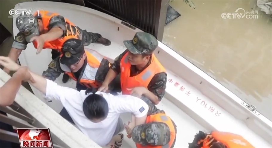 最終,官兵們用沖鋒舟撞開大門擠進(jìn)小區(qū),隨后爬上孕婦所在居民樓的二樓護(hù)欄進(jìn)入樓內(nèi),在14樓發(fā)現(xiàn)受困孕婦。為了保證孕婦的安全轉(zhuǎn)移,樓上的官兵小心攙扶孕婦翻過(guò)欄桿,官兵們搭成人梯,用自己的肩膀托住孕婦的雙腳,穩(wěn)穩(wěn)地把她轉(zhuǎn)移到?jīng)_鋒舟上。