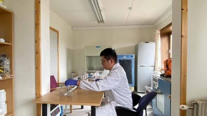 △2023年7月25日,一名中國科考隊(duì)員在挪威斯瓦爾巴群島新奧勒松的中國北極黃河站工作。